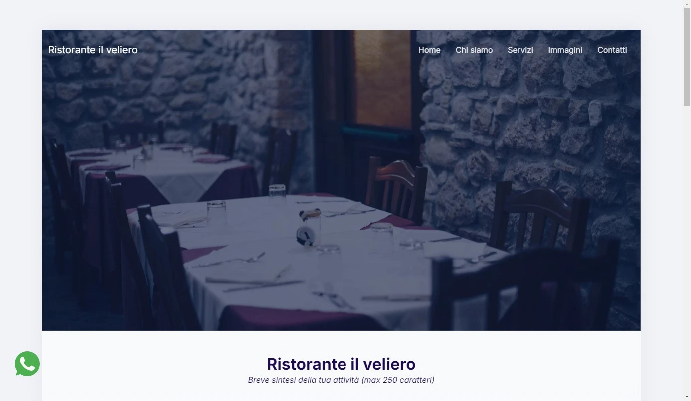 Esempio: Tema personalizzato; chi siamo; dove siamo; servizi; contatti; mappa; recensioni