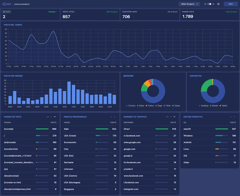 Sul sito web potrà essere attivato un sistema per la registrazione di visite e statistiche in generale semplice da consultare.
