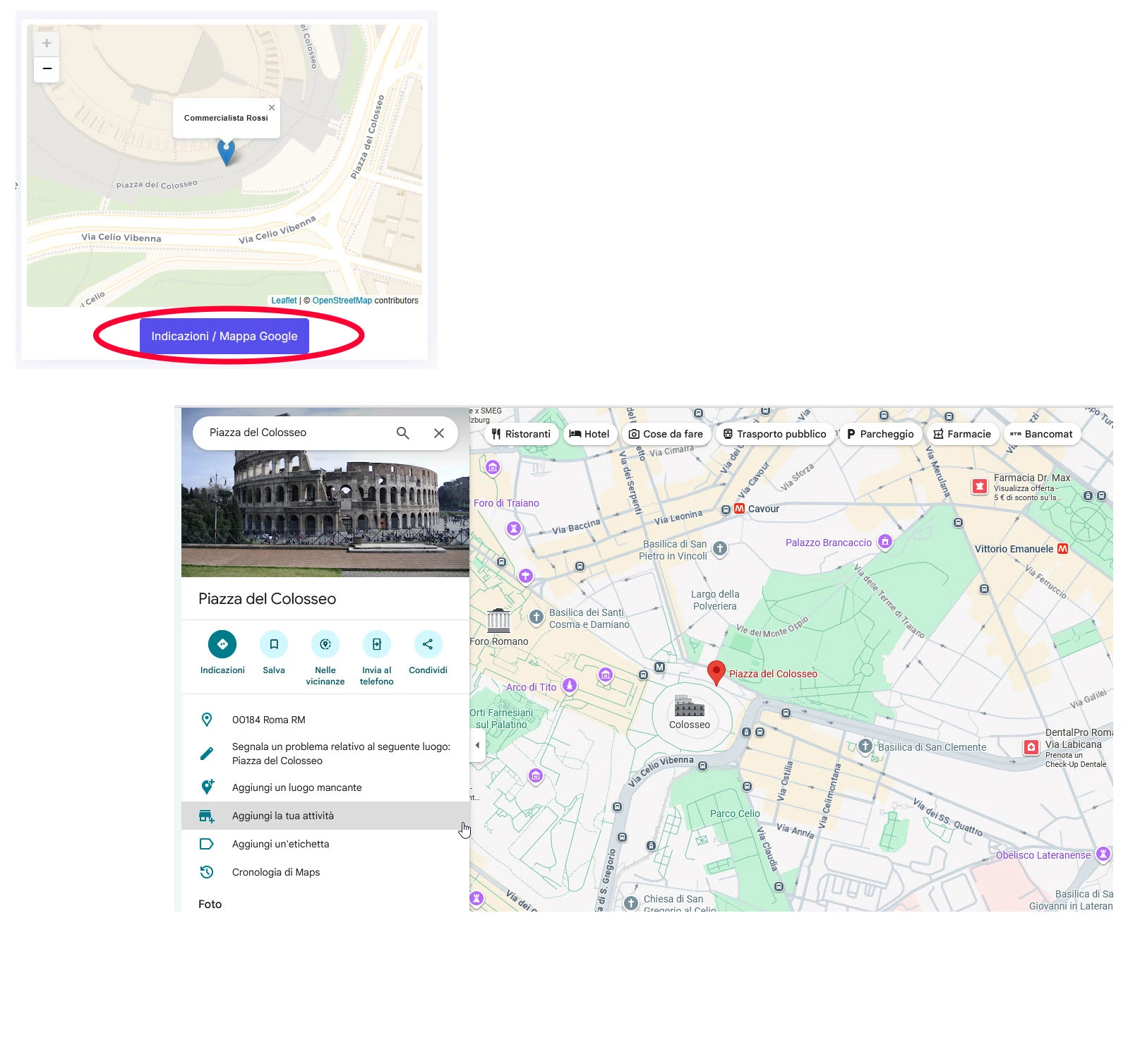 Sotto la mappa, è presente un bottone per passare direttamente a Google Maps per attivare le indicazioni stradali.