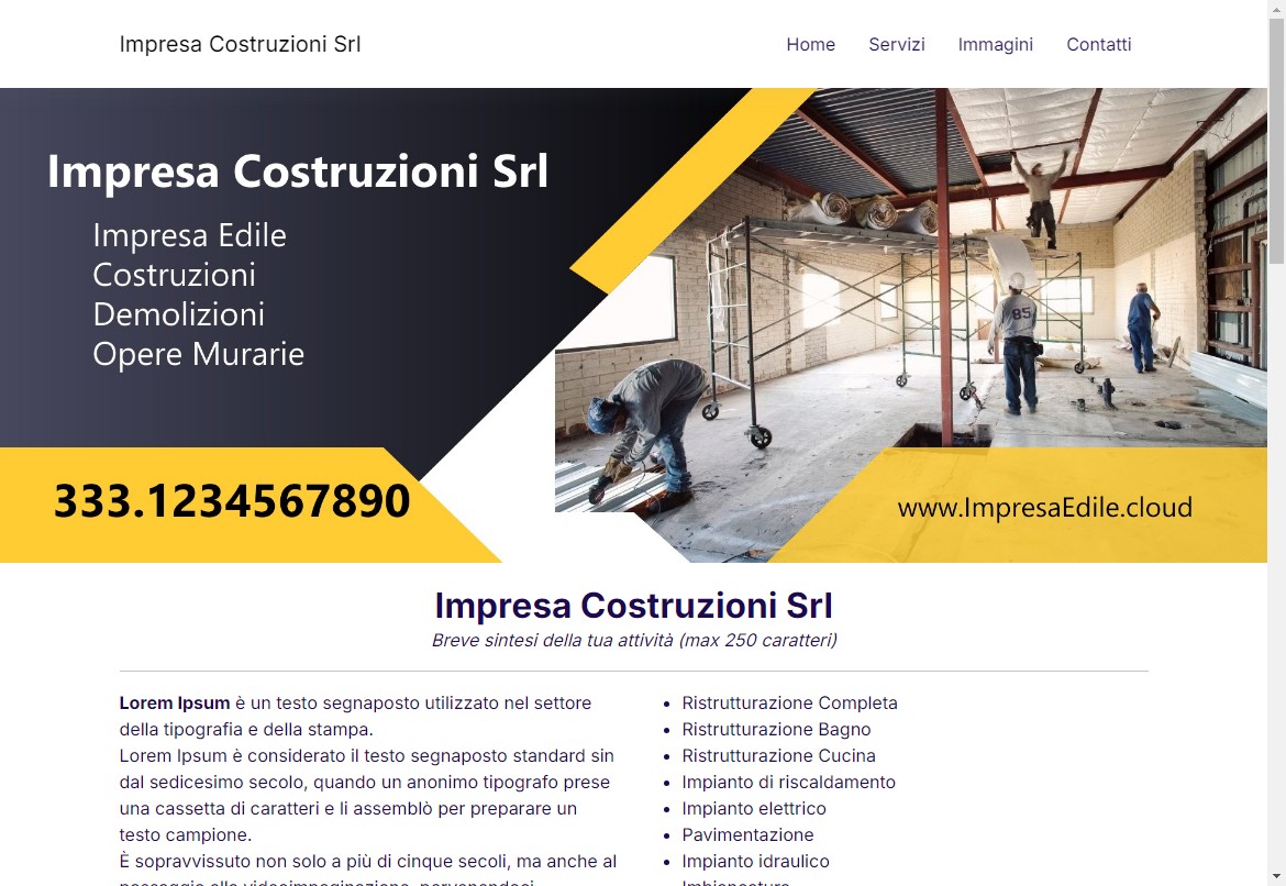 Nella prova gratuita il sito web sarà composto da alcuni vostri dati e alcuni dati preimpostati dal sistema.